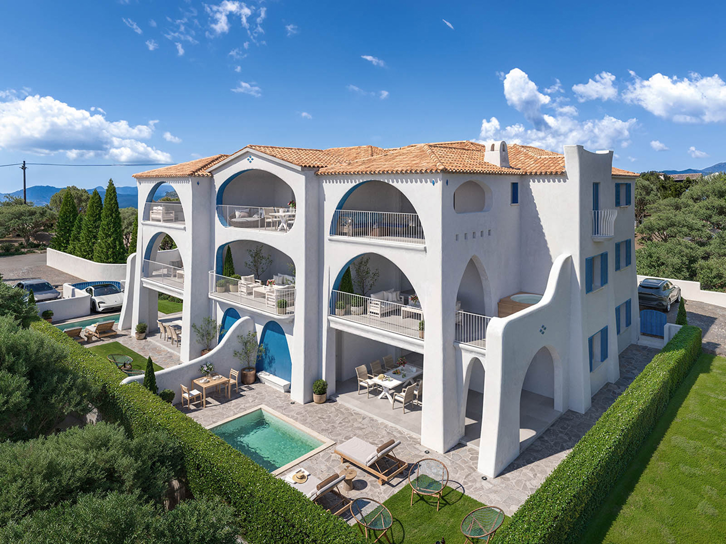 Villa Levante è una residenza esclusiva di soli otto appartamenti, progettata in perfetto stile sardo e costruita con materiali autentici e artigianato locale. Architetture morbide, intonaci a calce, marmo di Orosei, ferro battuto e dettagli fatti a mano creano un carattere unico, elegante e senza tempo.