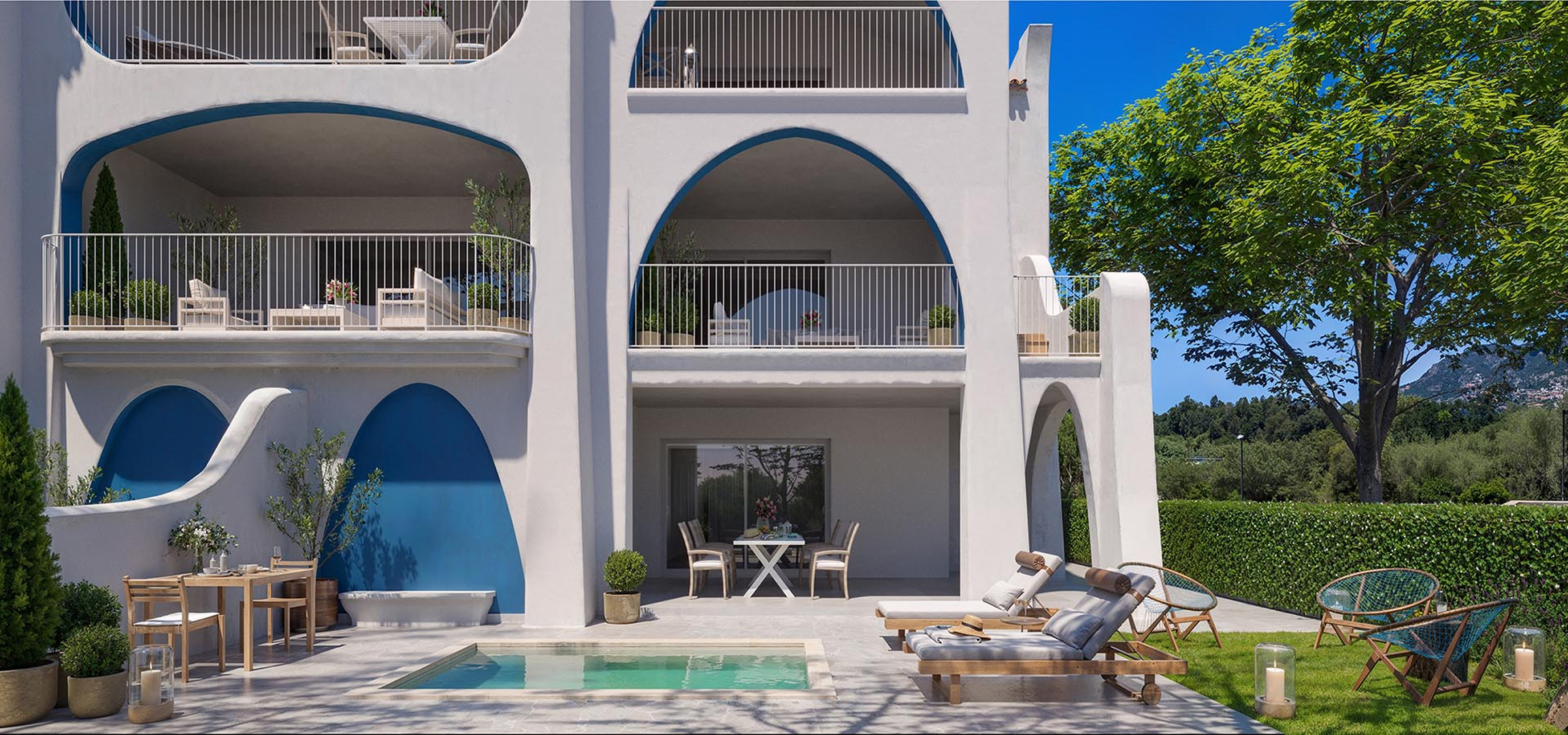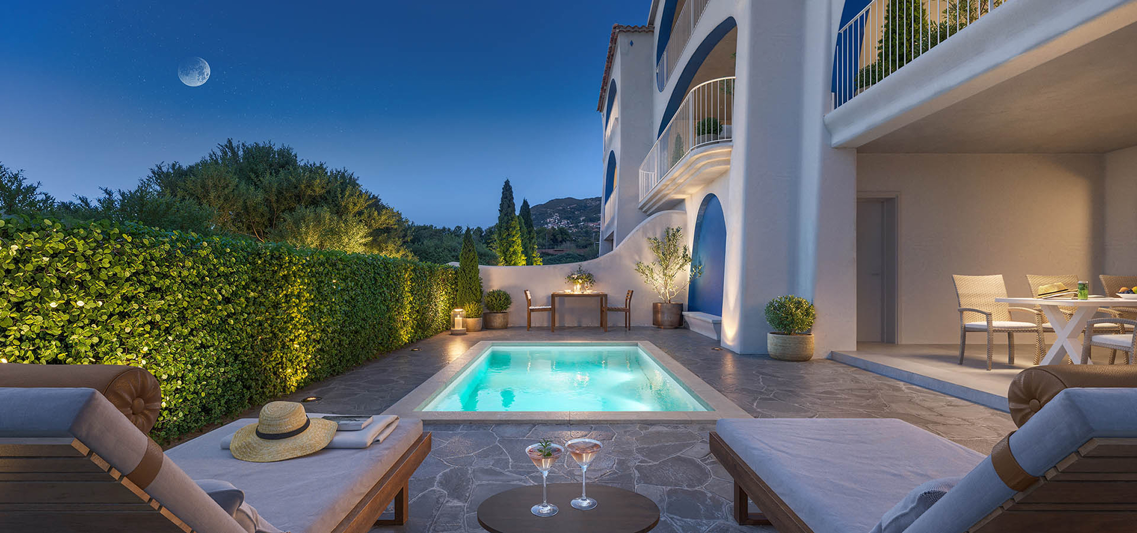 Gli appartamenti al piano terra possono prevedere una piscina privata, mentre quelli al primo piano offrono la possibilità di installare una jacuzzi, per vivere il comfort all’aperto tutto l’anno.